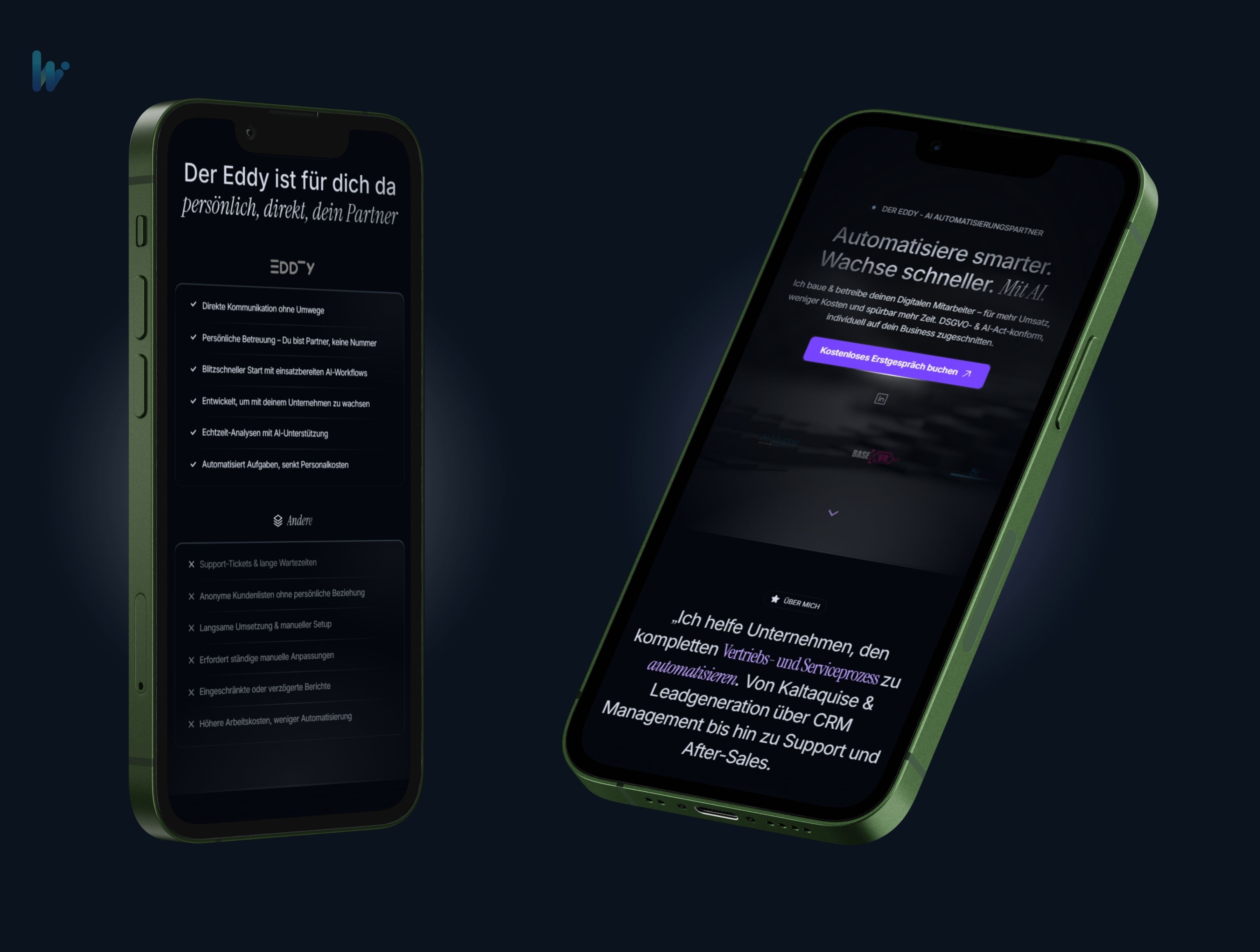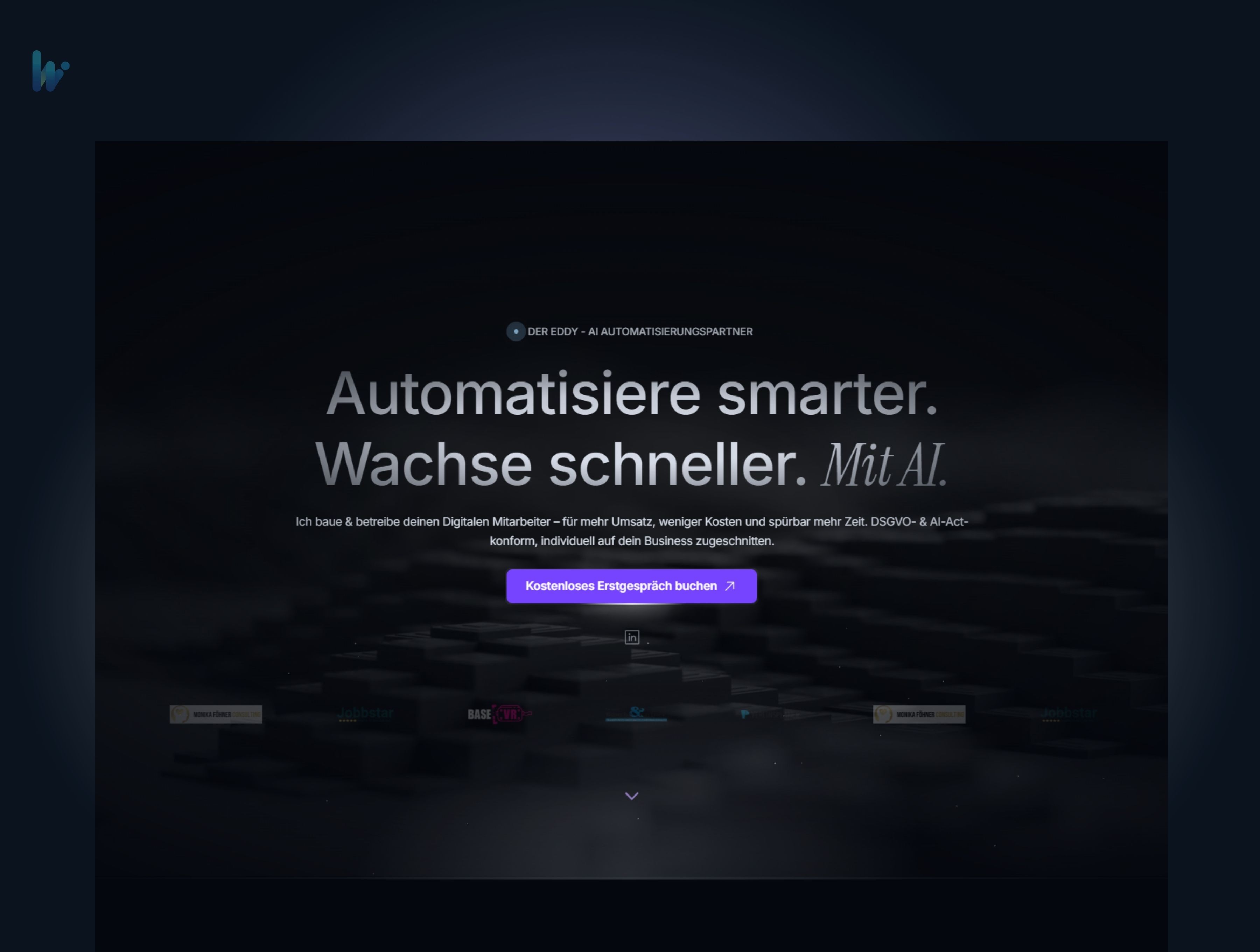 „Der Eddy" betrieb eine einfache Onepage-Website, die zwar grundlegende Informationen über das Unternehmen bereitstellte, jedoch weder die innovative Ausrichtung noch die technologische Expertise angemessen widerspiegelte. Die statische Seite bot keine dynamischen Elemente, verzichtete auf moderne Interaktionen und war weder für Suchmaschinen optimiert noch technisch auf dem neuesten Stand.